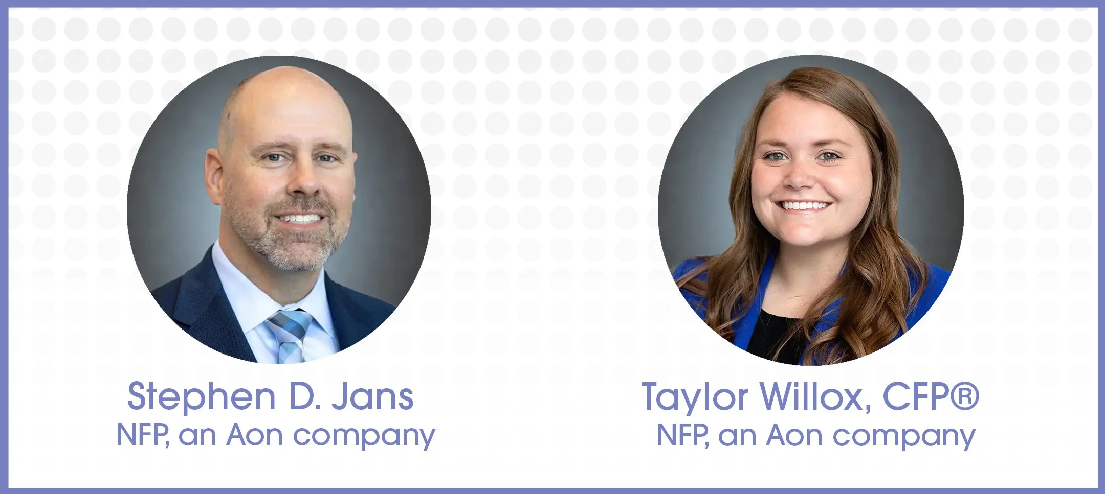 Join The Bridge for a timely and engaging educational event featuring Stephen D. Jans and Taylor Wilcox from AON. This virtual event is an informational session focused on financial literacy and long-term planning tools.