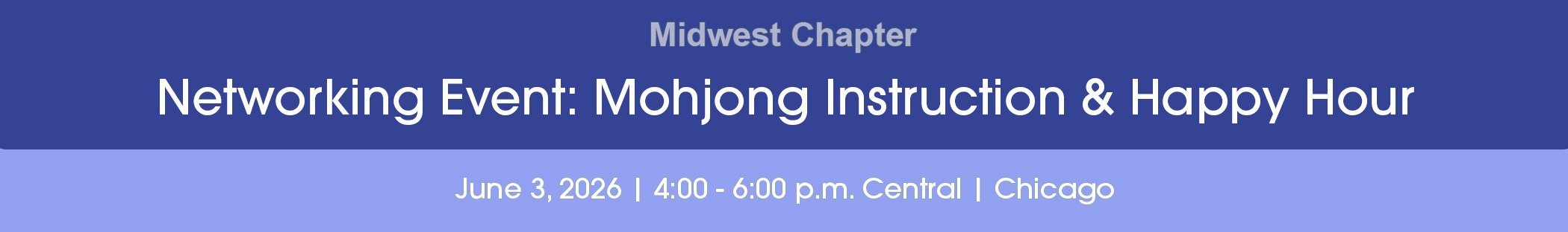 Join us for a fun and engaging Midwest Chapter Networking Event in Chicago, featuring Mahjong instruction, open gameplay, and a lively happy hour atmosphere. Whether you’re brand new to Mahjong or already know your way around the tiles, there will be dedicated instruction as well as tables available for experienced players.