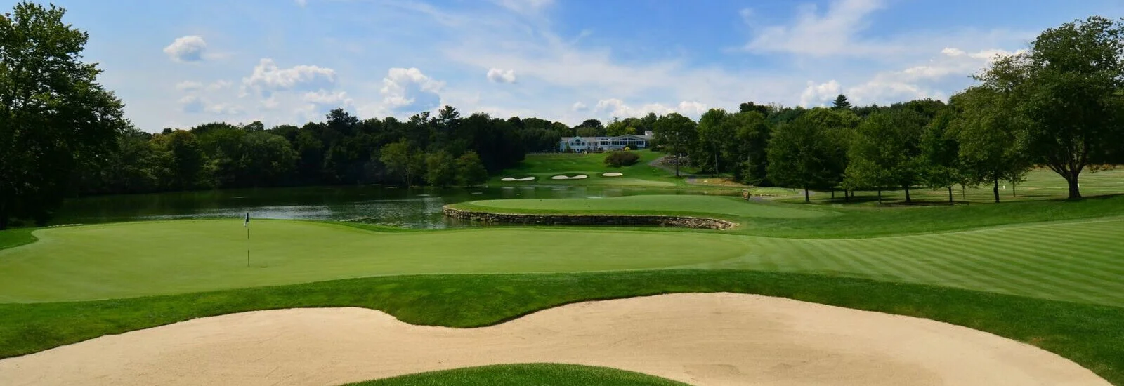 At 6,800 yards, our course offers our members and their guests a challenging yet highly rewarding and enjoyable golf experience. Each hole requires a unique set of shot making skills, with daunting green-side bunkers guarding lightning fast greens. Nowhere is this more evident than hole #8, where a spectacular risk-reward shot is required or at the signature par 3, 9th hole, crossing Ayers Lake onto a two-tiered, elevated green.